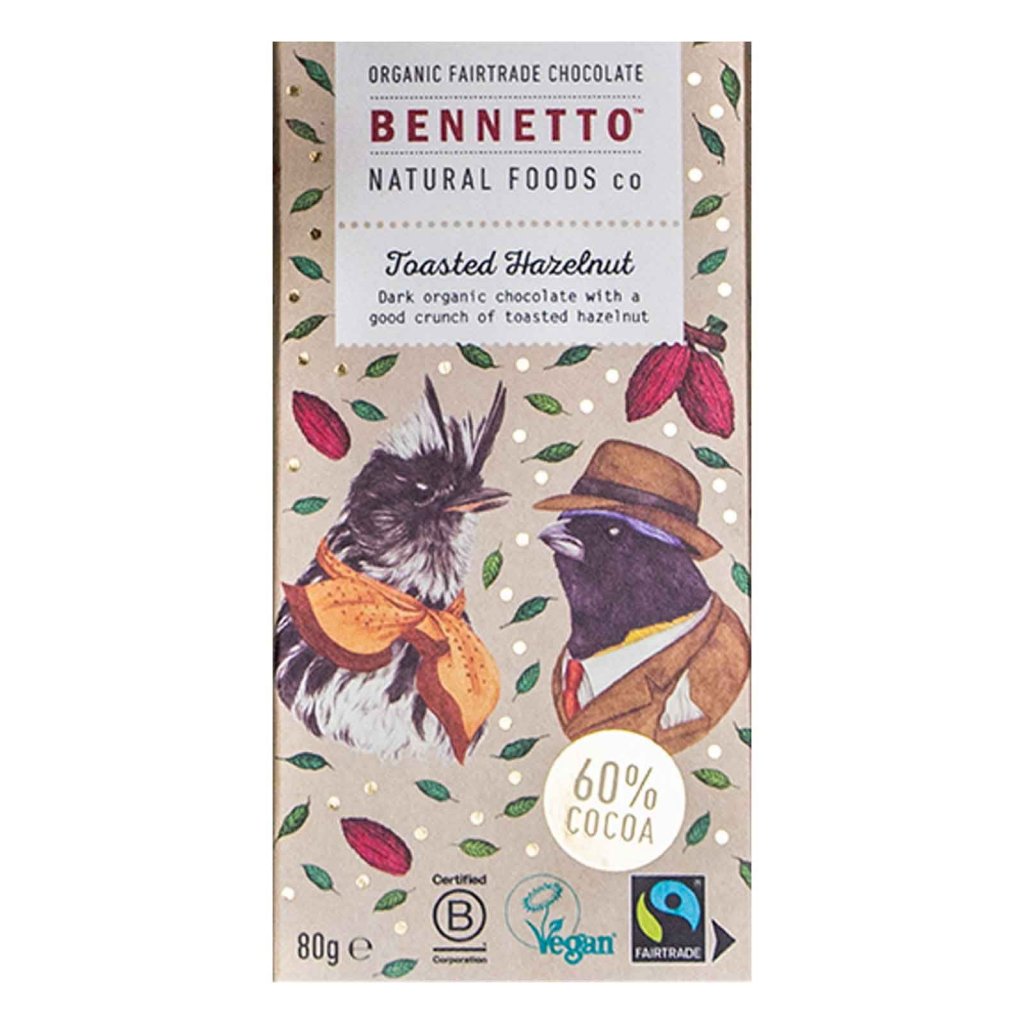 Toasted Hazelnuts är en ekologisk Fairtrade-certifierad mörk choklad med 60% kakao och en generös krispighet av rostade hasselnötter. Denna choklad är inte bara en läcker smakupplevelse utan också ett exempel på etiskt och hållbart företagande. Fairtrade-certifikatet innebär att företaget uppfyller höga sociala och miljömässiga standarder. Genom att välja denna choklad stödjer du en verksamhet som tar ansvar för både människor och planeten. Vegansk choklad.