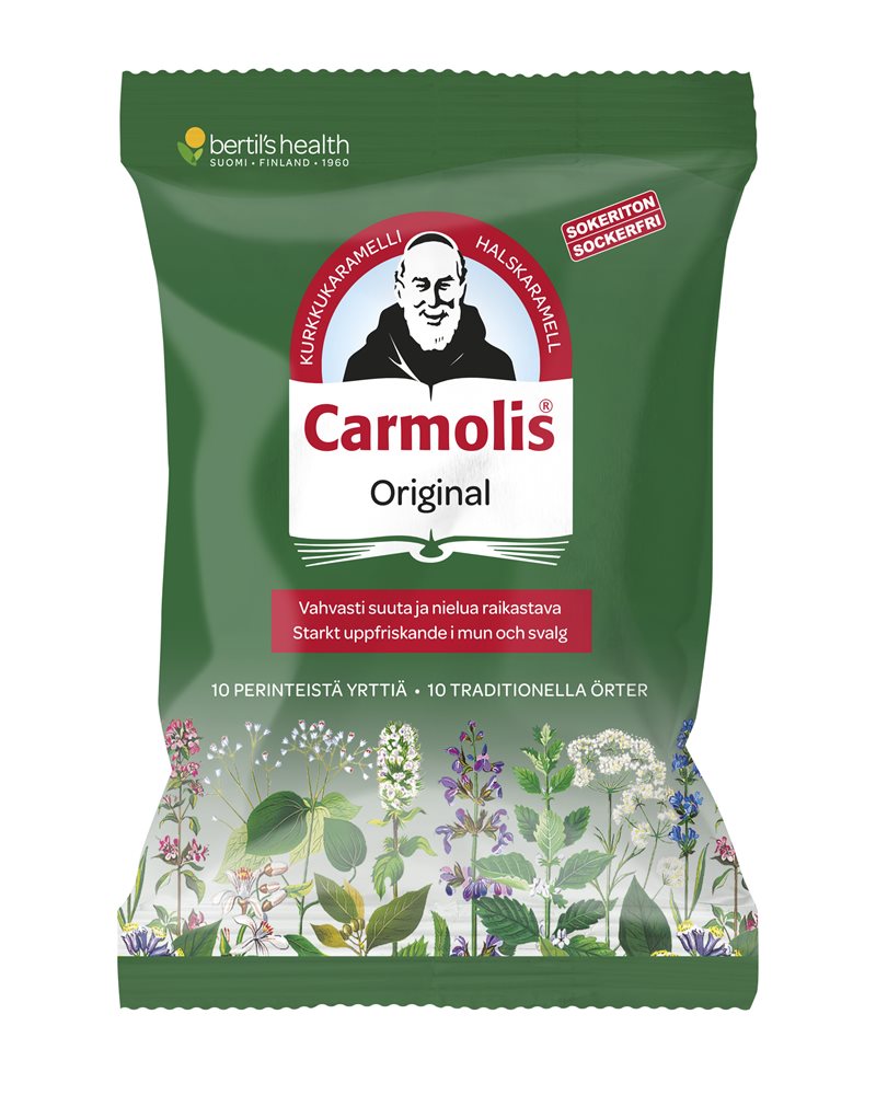 Alla Carmolis Örtkarameller innehåller en varierande mängd av den för Carmolis Örtdroppar bekanta blandningen av eteriska oljor. Carmolis Örtdroppar är ett uppskattat örtpreparat med långa traditioner som Karmelitmunkarna framställde i sitt klosterapotek redan på 1600-talet.