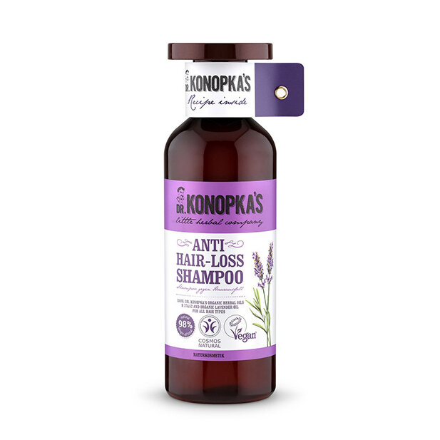 Dr.Konopka's Anti Hair-Loss Shampoo* är naturligt och innehåller unika ekologiska örtbaserade håroljor. Dessa oljor är fulla av vitaminer som hjälper till att stärka rötterna och förhindra håravfall.