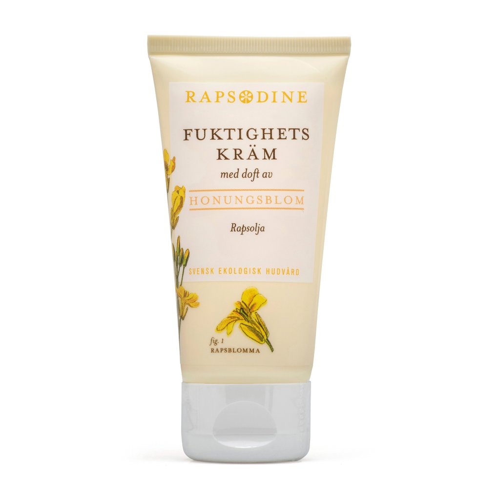 Rapsodines fuktighetskräm utnyttjar rapsoljans unika mjukgörande egenskaper och förmåga att bevara hudens naturliga fuktighet. Den kallpressade rapsoljan, tas lätt upp av huden och tillför näringsämnen i form av vitaminer, mineraler och hälsosamma fettsyror.