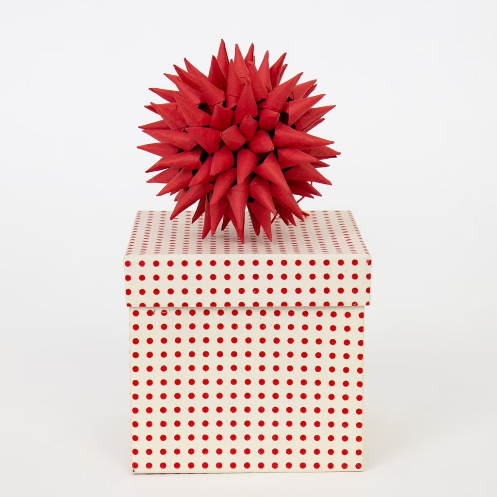 Vackert pappershantverk i en fin liten prickig låda. Papperstillverkningen skapar angelägen sysselsättning för framförallt kvinnor på landsbygden.
