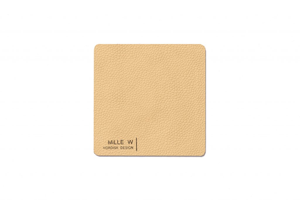 MiLLE W NORDISK DESIGNs glasunderlägg är tillverkade av återvunnet läder. Med återvunnet läder får man känslan och doften från läder, blandningen av naturgummi gör dem vattenavvisande med hög slitstyrka. Det gör dem mycket lätta att rengöra med diskmedel och en mjuk trasa, samtidigt som de blir en vacker inredningsdetalj på bordet.