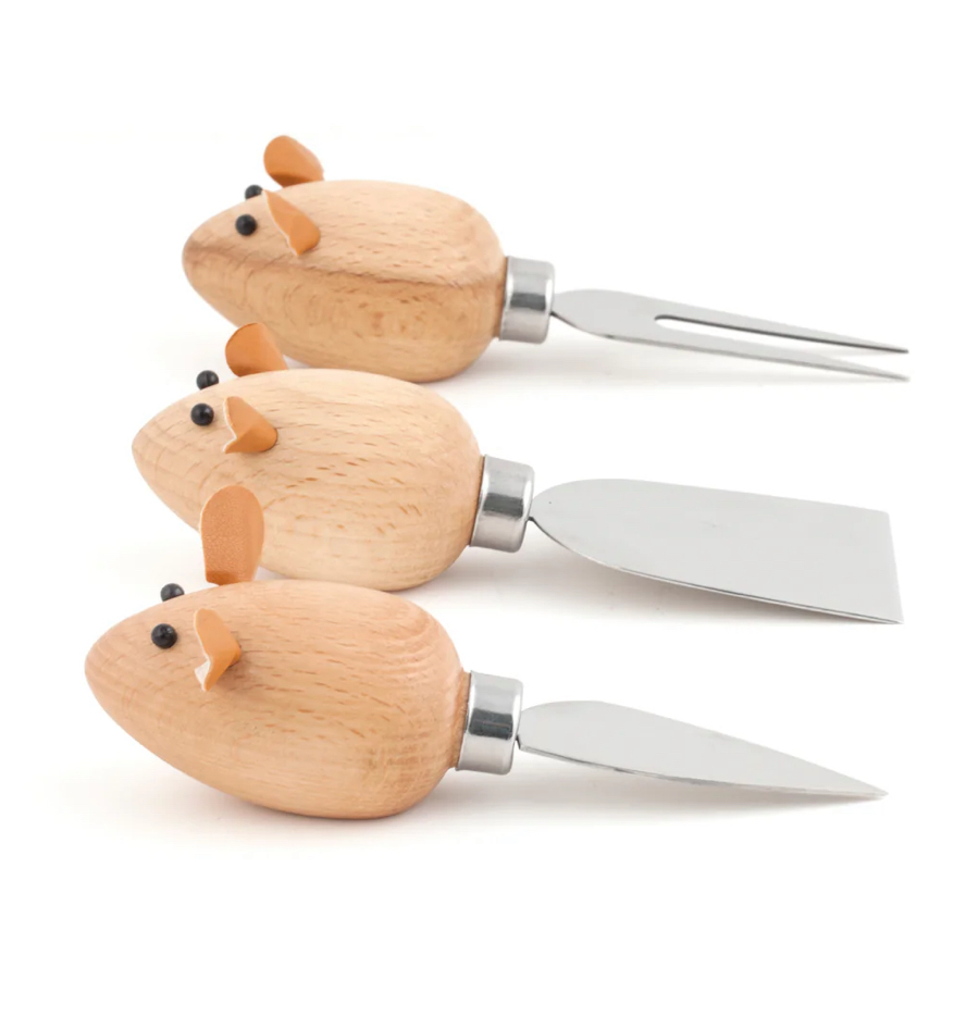 Cheese lovers unite with this set of 3 mouse cheese knives.