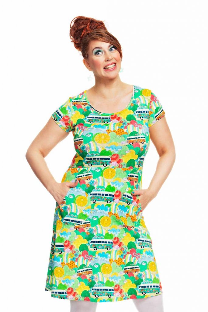Asta är en trikåklänning. Klänningen har en skärning i midjan och rundande fickor framtill. Ett riktigt fint och mjukt plagg som passar perfekt alla veckans dagar!
