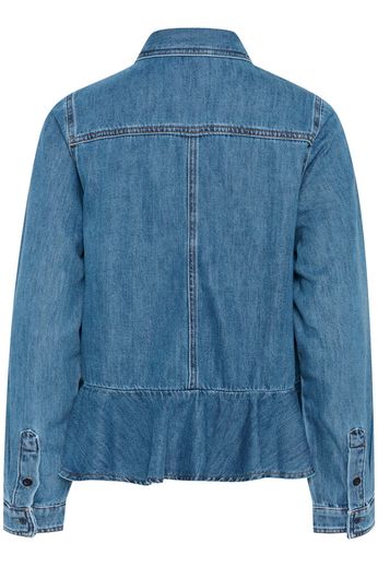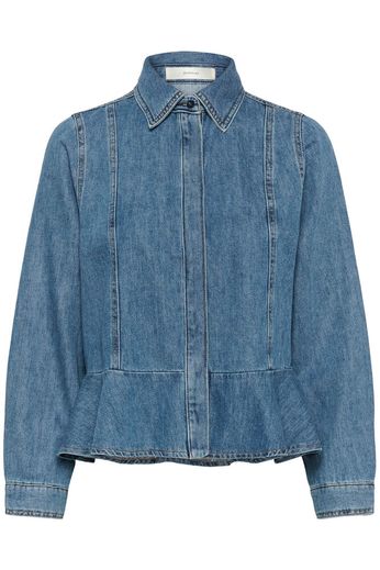 Jeansjacka med peplumfåll, rak passform och klassisk skjortkrage. Vertikala sömmar, långa ärmar och stängd front ger en modern jeanslook.