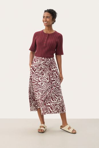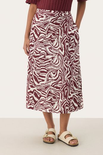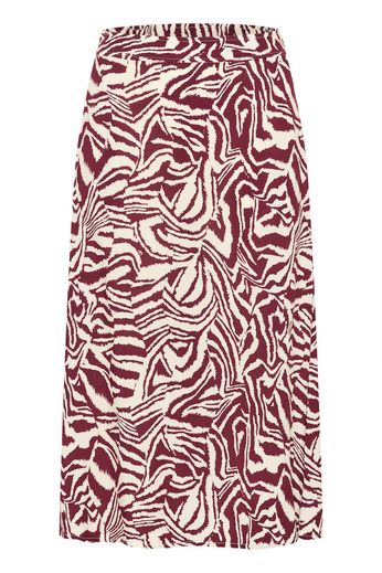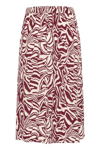 Den här midikjolen med grafiskt mönster är tillverkad i lätt och mjuk viskos som faller fint. Den elastiska midjan och avslappnade silhuetten gör den både bekväm och stilren. Styla med en stickad tröja eller skjorta för en modern look.