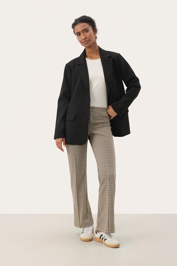 De här byxorna med raka ben har ett klassiskt rutmönster och är sydda i ett mjukt vävt tyg med resår i midjan för extra komfort. Den tidlösa passformen gör dem perfekta för både arbete och fritid. Matcha med en enkel skjorta eller stickad tröja för en avslappnad stil.