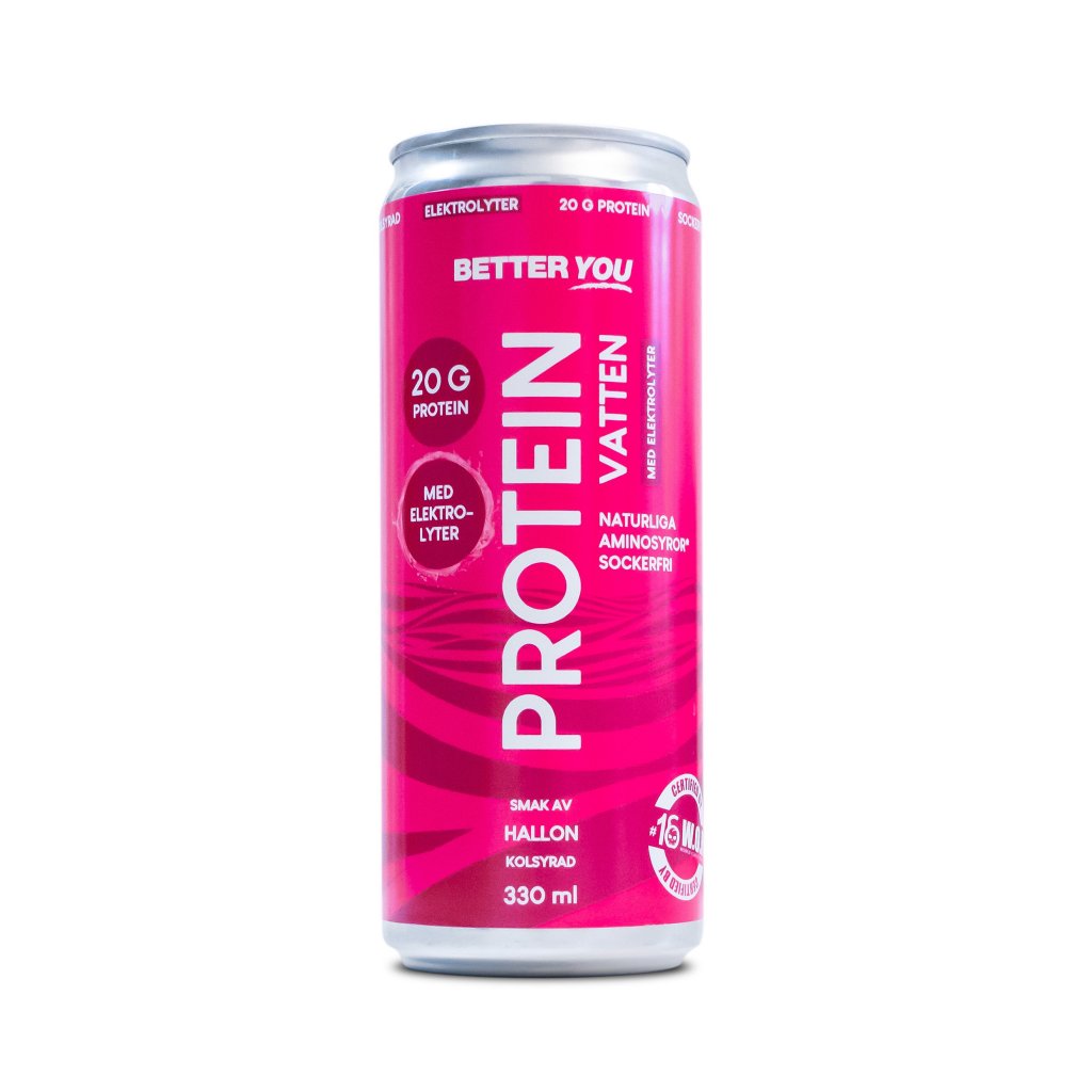 Better You och 16 WEEKS OF HELL’s proteinvatten med elektrolyter är en produkt med 20 g fria aminosyror (dvs 20 gr protein). Produkten är helt naturlig med aminosyror framtagna via fermentering av majs (icke GMO). Innehåller de viktigaste elektrolyterna kalcium, kalium, natrium och magnesium