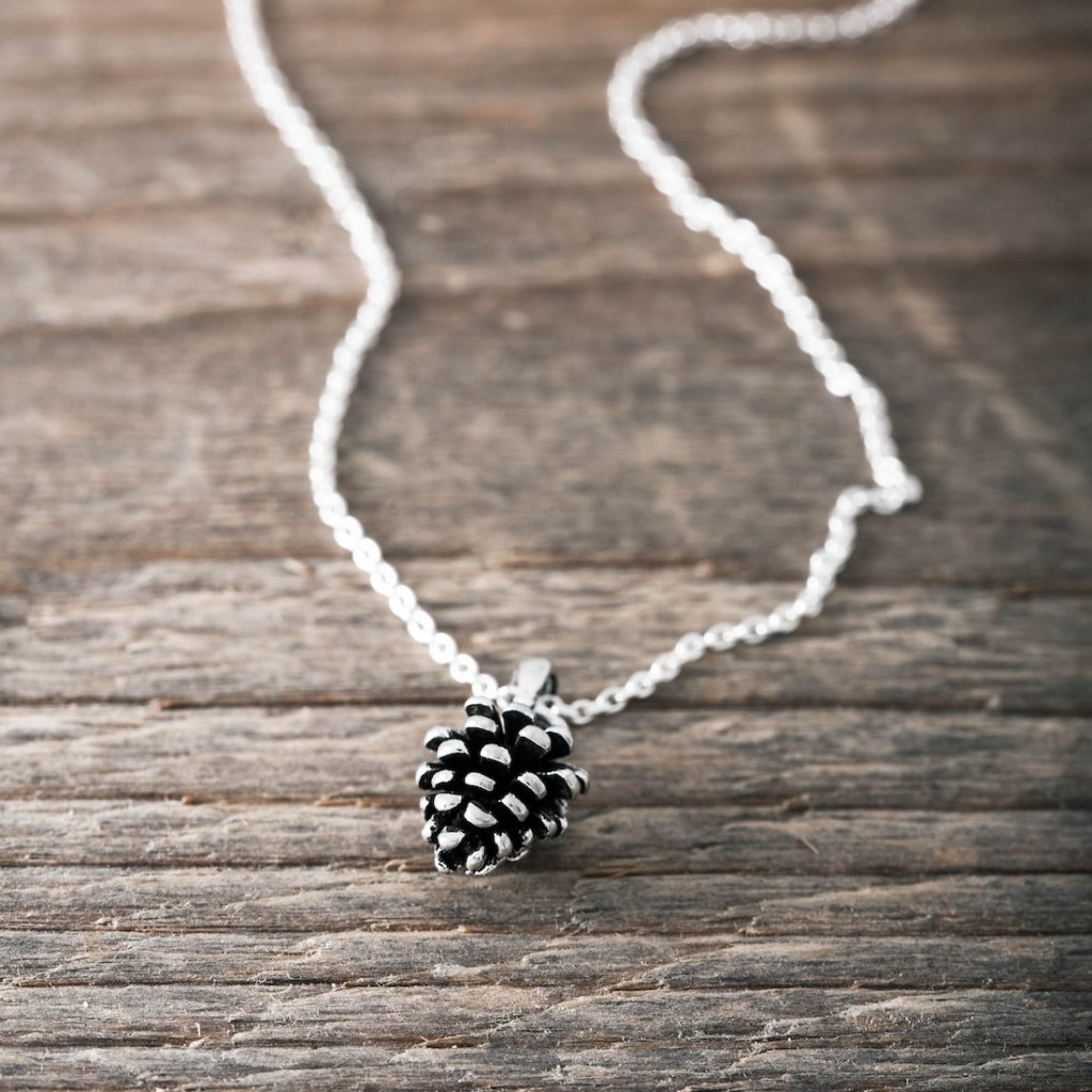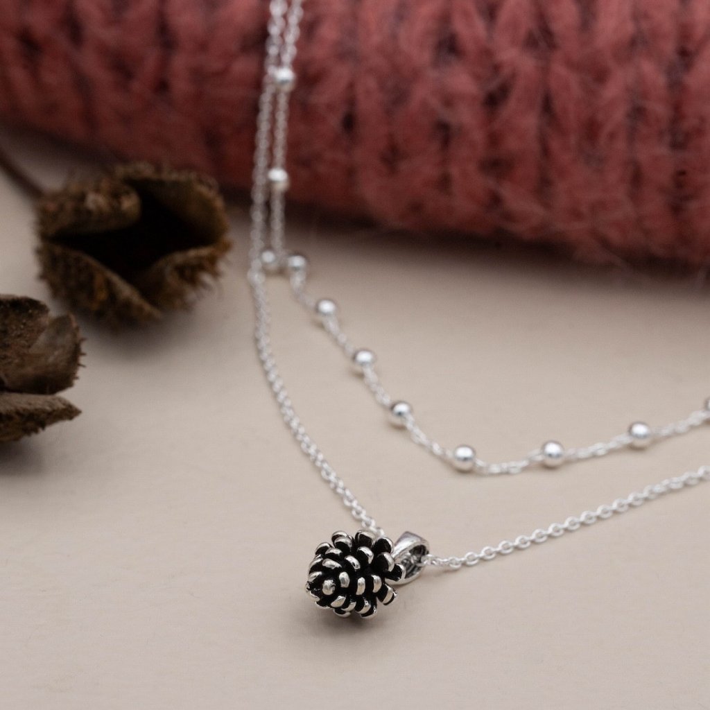 Silverhalsband med en söt kotte. -En symbol för potential och styrka i det lilla.