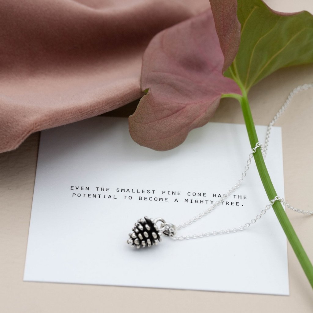 Ett litet smycke med ett stort budskap. Den här kotten i äkta silver symboliserar potential, hopp och styrka – en påminnelse om att varje litet steg kan leda till något stort.