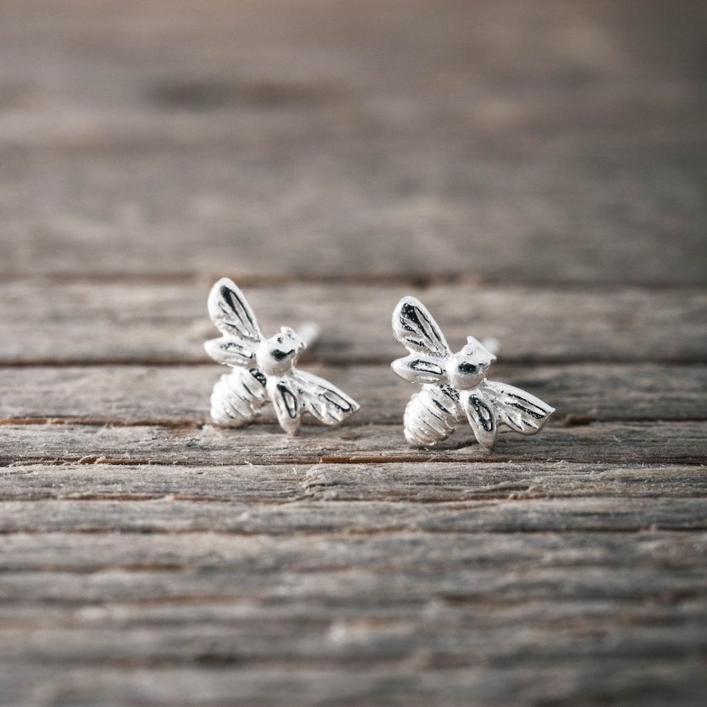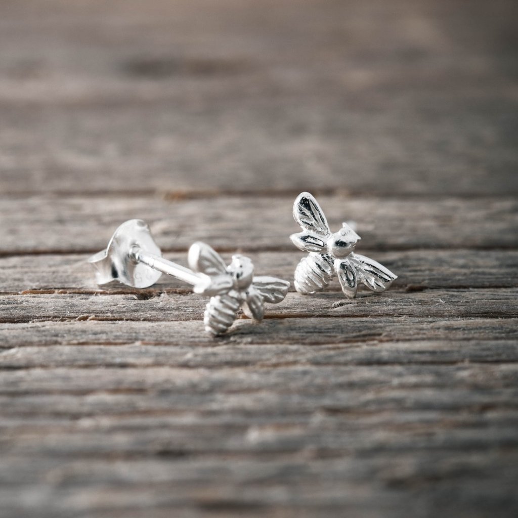 Silverörhängen i form av ett litet bi.