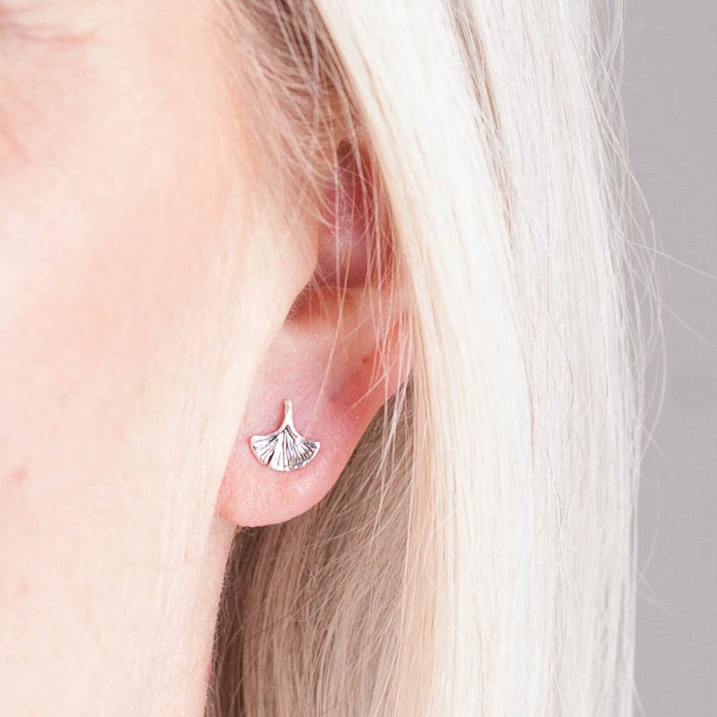 Söta små silverörhängen i form av små Ginkgolöv som symboliserar styrka och livets alla möjligheter.