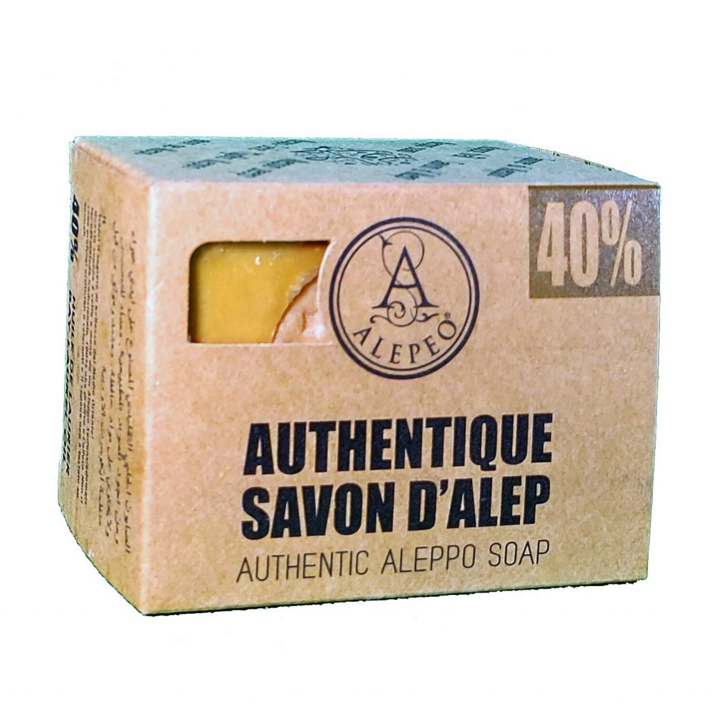 Aleppotvål 40% gjord på olivolja, lagerbärsolja och vatten. Kan användas både till kroppen och till ansiktet. Denna tvål innehåller 4% lagerbärsolja.