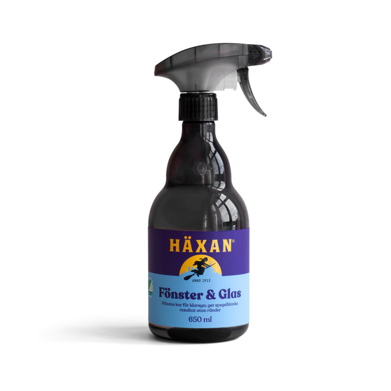 Häxans kur för klarsyn; ger spegelblanka resultat utan ränder. Häxan Fönster & Glas gör dina glasytor och speglar strålande rena utan att lämna ränder. Passar även utmärkt till kakel, bänkskivor, kylskåp och andra blanka ytor.