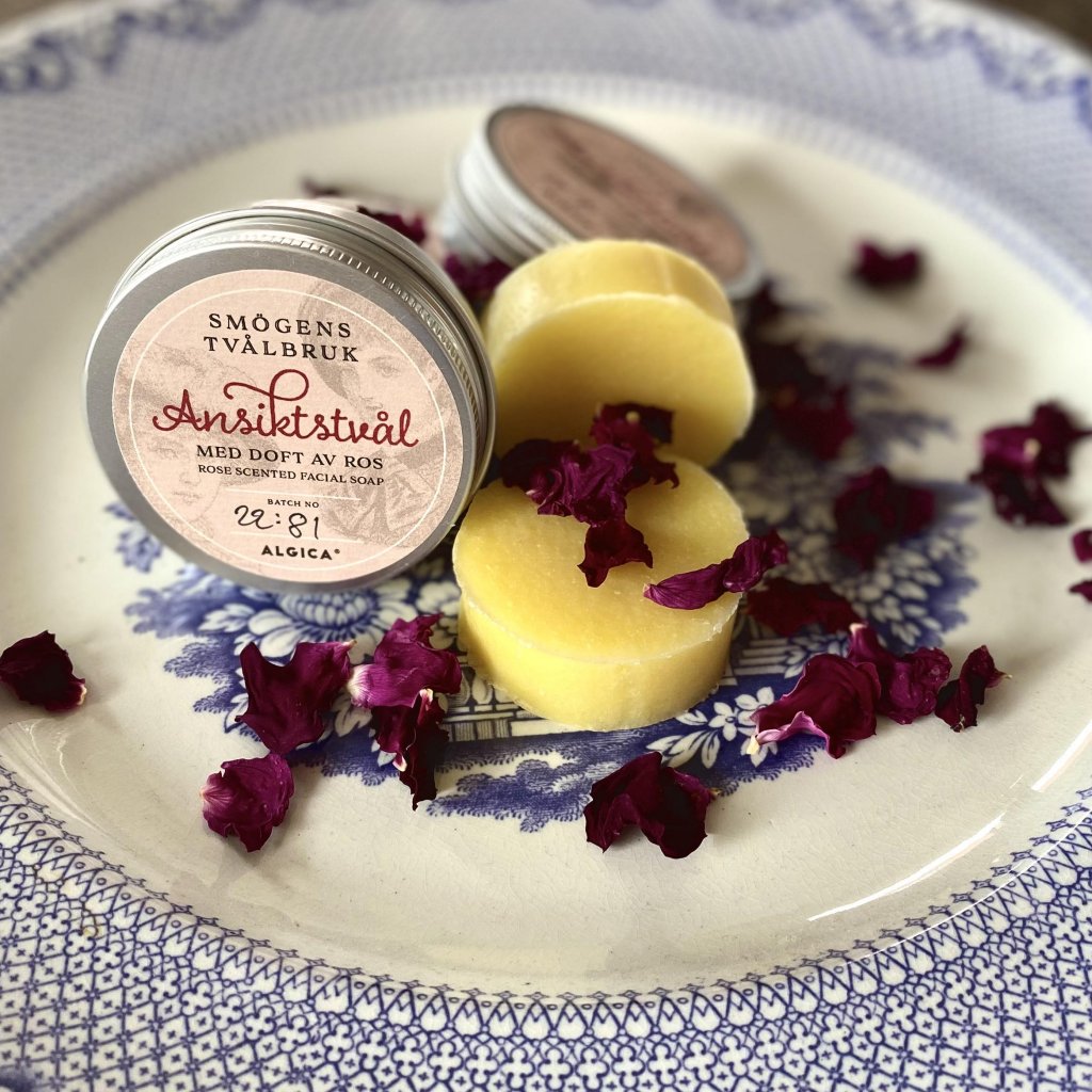 En ansikttvål med high tech Algica från Swedish Algae Factory och klassiskt hantverk från Smögens Tvålbruk. Krämigt lödder med en tydlig men balanserad rosendoft. Levereras i en praktisk burk med skruvlock som kan återanvändas till mycket!